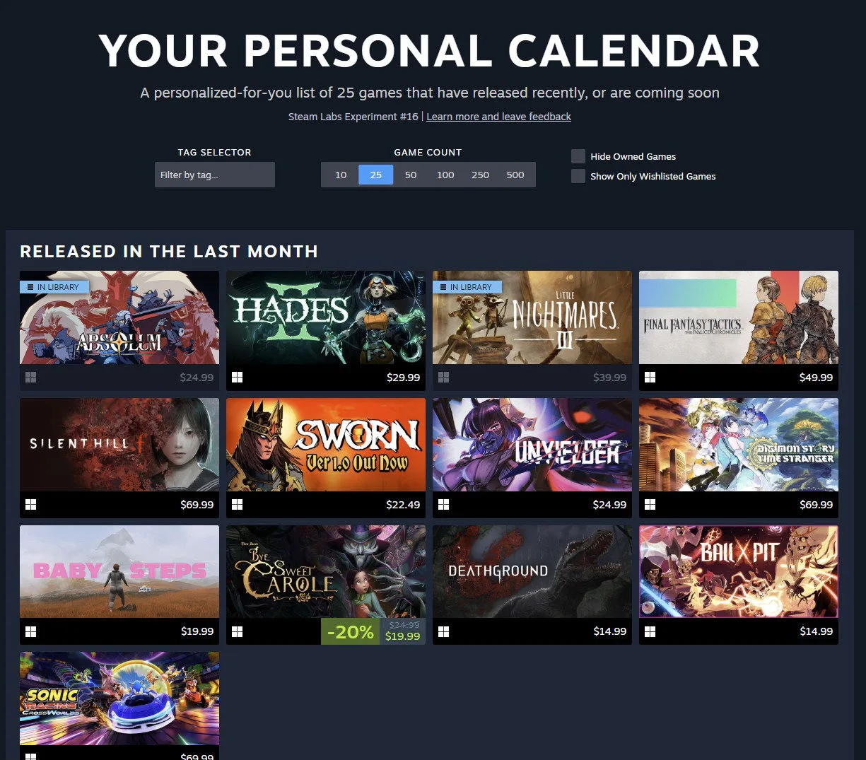 A Valve acaba de lançar uma nova ferramenta revolucionária para o Steam, o Calendário Pessoal, projetado para transformar a maneira como os jogadores descobrem novos jogos. Este recurso, nascido como Experimento 16 do Steam Labs, cria uma agenda personalizada de lançamentos, baseada nos seus hábitos e gostos, prometendo uma experiência de descoberta muito mais afinada e relevante.