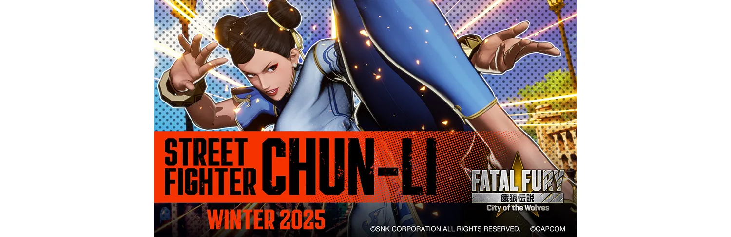 A chegada de Chun-Li a Fatal Fury: City of the Wolves está marcada para o Inverno de 2025 (no hemisfério norte), e ela não virá apenas com seu arsenal de golpes clássicos, mas também com conteúdo exclusivo para o modo história. A personagem terá uma nova trama no modo Arcade e uma aventura no estilo RPG no modo EOST (Episodes of South Town), onde ela é convidada a compartilhar sua experiência em artes marciais com os habitantes da cidade. Para os fãs mais puristas, a SNK confirmou que o traje clássico chinês de Chun-Li, visto em Street Fighter 6, estará disponível como uma roupa alternativa.