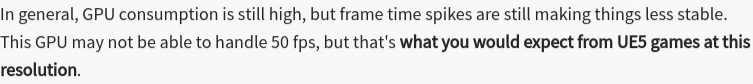 - 4K (Configurações Épicas, DLEA): Média de 50 fps. O consumo da GPU é alto, mas picos de frame time causam instabilidade.