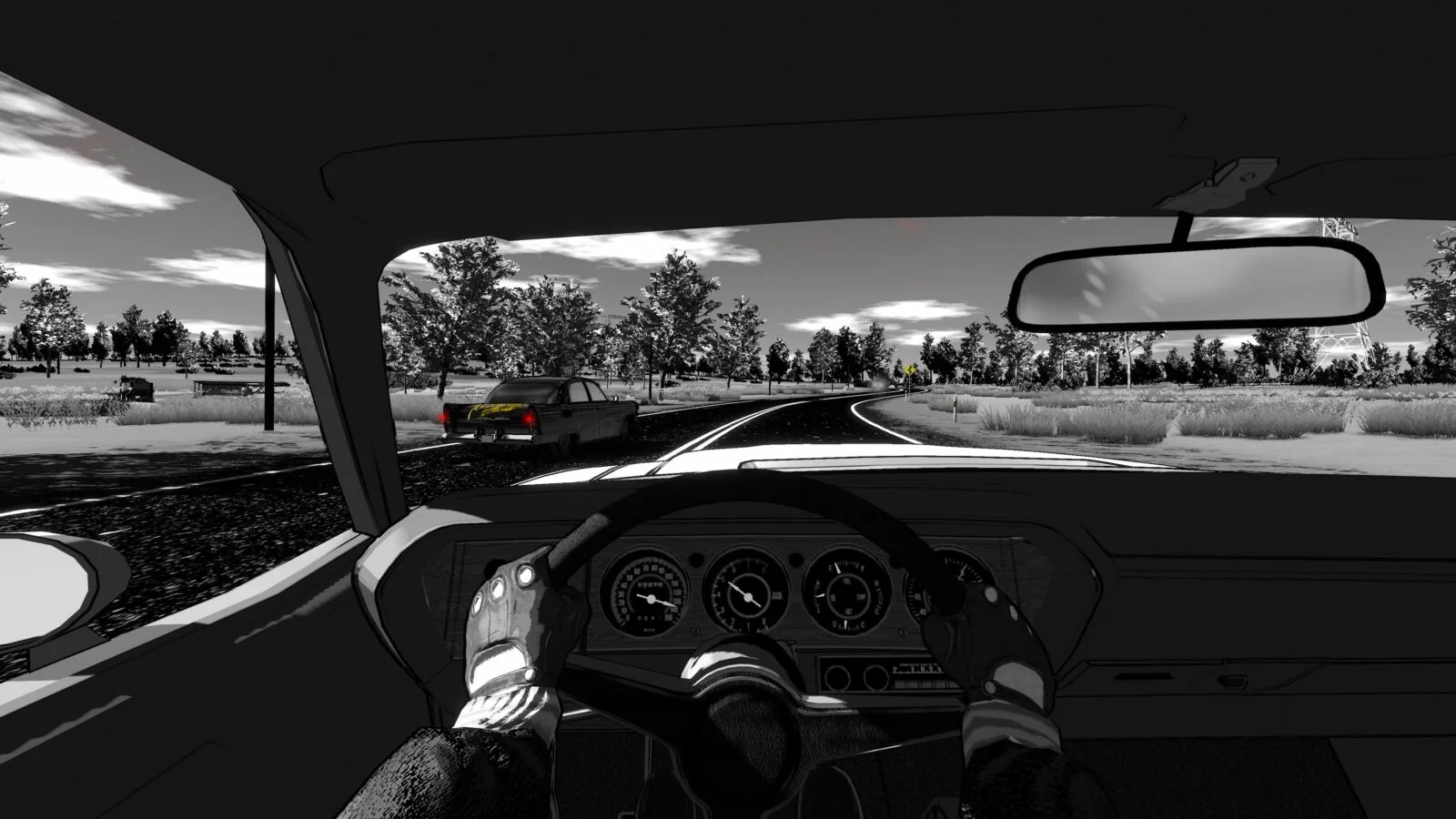 O visual aposta no preto e branco de alto contraste, pinchado por vermelho e amarelo para destacar perigo e foco. Além disso, os quadros narrativos em tela cheia lembram páginas de HQ, com linhas de ação que guiam olhar e emoção. Em movimento, a estrada exibe granulação leve e reflexos contidos; portanto, a estética noir permanece firme mesmo quando a chuva cai.
